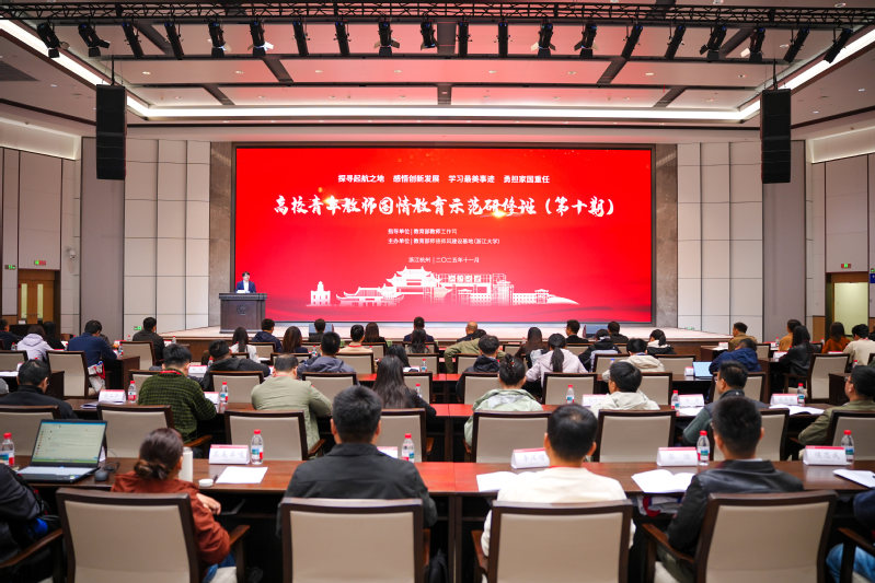为深入学习贯彻党的二十届三中、四中全会精神和全国教育大会精神,推进落实《中共中央国务院关于弘扬教育家精神加强新时代高素质专业化教师队伍建设的意见》文件要求,将师德师风和教育家精神融入教师培养培训全过程,11月3日-6日,教育部高校青年教师国情教育示范研修活动在浙江大学举行,部属高校、部省合建高校及其他中央部门所属有关高校海外留学归国青年教师代表参加。此次国情教育示范研修活动在教育部教师工作司指导下,由教育部师德师风建设基地(浙江大学)主办,通过专题报告、现场教学、参观实践等沉浸式研学形式,教育引导高校海外留学归国青年教师准确把握习近平新时代中国特色社会主义思想,深入了解党情、国情、社情、民情,在教育强国建设中强化使命担当。活动充分结合浙江是中国革命红船的启航地、改革开放的先行地、习近平新时代中国特色社会主义思想重要萌发地的优势,开展“红船起航守初心”“教育家精神铸师魂”“家国情怀修师德”“改革创新提师能”“凝心聚力正师风”五个模块课程教学,赴“红船精神”嘉兴南湖红色教育基地、“两山”理论发源地湖州安吉、流体动力基础件与机电系统全国重点实验室展厅、浙江大学马兰精神教育基地等地进行现场教学。
